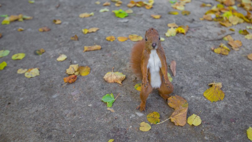 Have you ever tried to figure out what’s going through the head of a squirrel? Try it – I dare you – haha! I moved to Oklahoma for college and witnessed squirrels there that were larger than normal. Not only that, but they were brazen – there were times that we didn’t have to wander what was going through their heads. They would run into the middle of a walkway, stand on their hind legs, raise their little hands up and squeak at you as loud, fast and angry as they could. I routinely saw them jump in the middle of the street to challenge a car the same way. I’m not quite sure what we had done to offend the little guys – but those squirrels were pretty mad at humans – probably. Or maybe they just thought we were a giant nut that got away – hmmmm – a mystery …